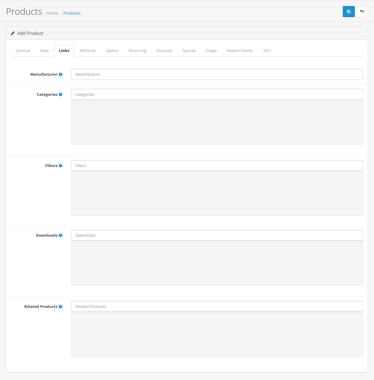 - Filters: Select the filters to be applied to this product if your Filter module is enabled. See Filters for more information.